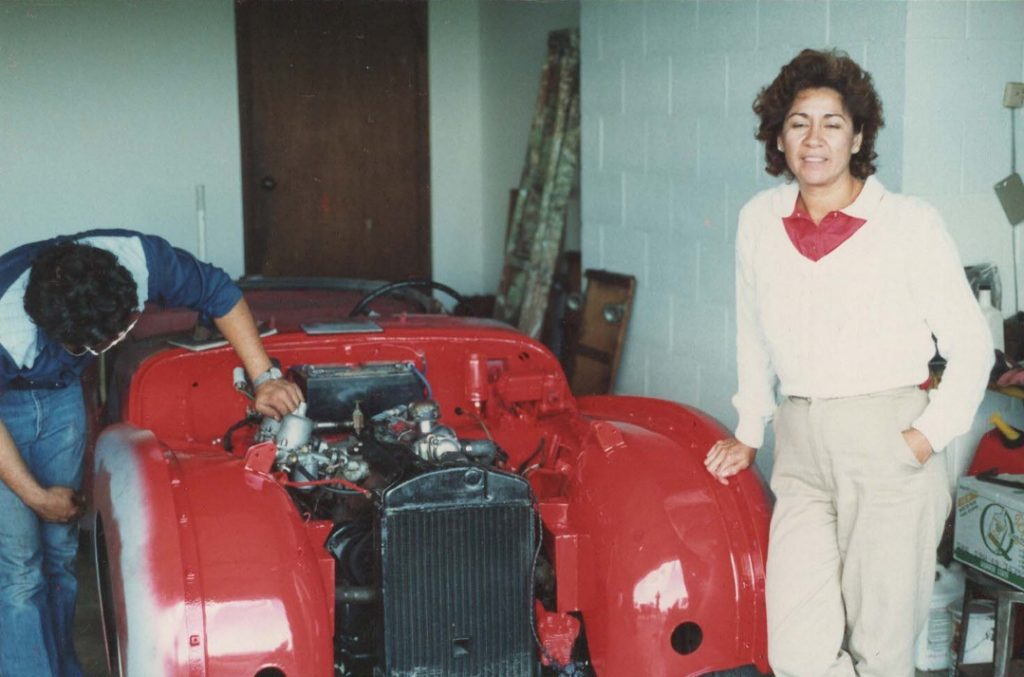 I think it was about this time that we decided to move the car to Sergio’s garage in Jackson, Wisconsin since that was where the preliminary restoration work could be done more conveniently. Don’t really recall how long it took, six months maybe more. It finally got a new rag top, carpeting, seats, wire wheels, tires, etc. Grace picked out the color, Cardinal Red. Not an “official” 1957 Triumph color but sure looks better than the powder blue we started with. We did take a trip to my sister’s house near St Louis, MO for a family reunion many years ago and had no problems. It kept up with traffic on the interstate at 70 MPH and got a lot of looks.